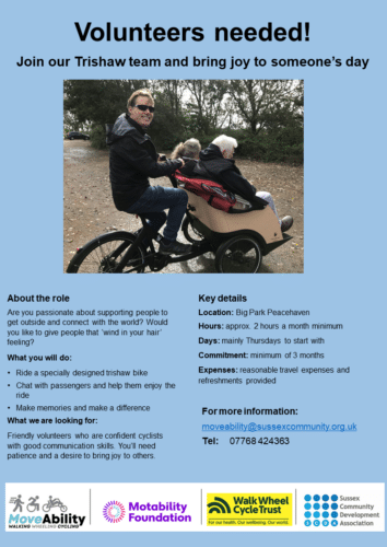 MoveAbility launched in Newhaven in April 2024 to help local people with disabilities in Peacehaven, Newhaven and Lewes District to travel more actively. The three year project has been funded by the Motability Foundation, a charity which funds, supports, researches and innovates so that all disabled people can make the journeys they choose.